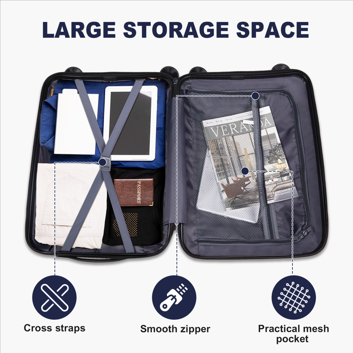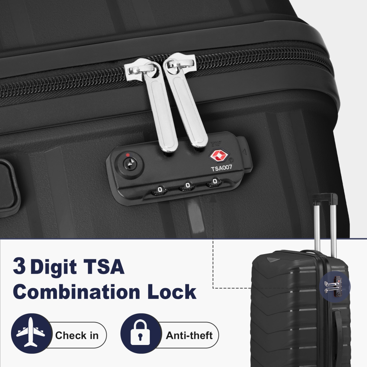 Adult Weekender | Personalised Fancy Dress & Character Kits for Big Weekenders |V-striped 2-piece suitcase with PP handbag PP trolley case 14in 20in PP iron trolley classic colour - black (grained pattern)